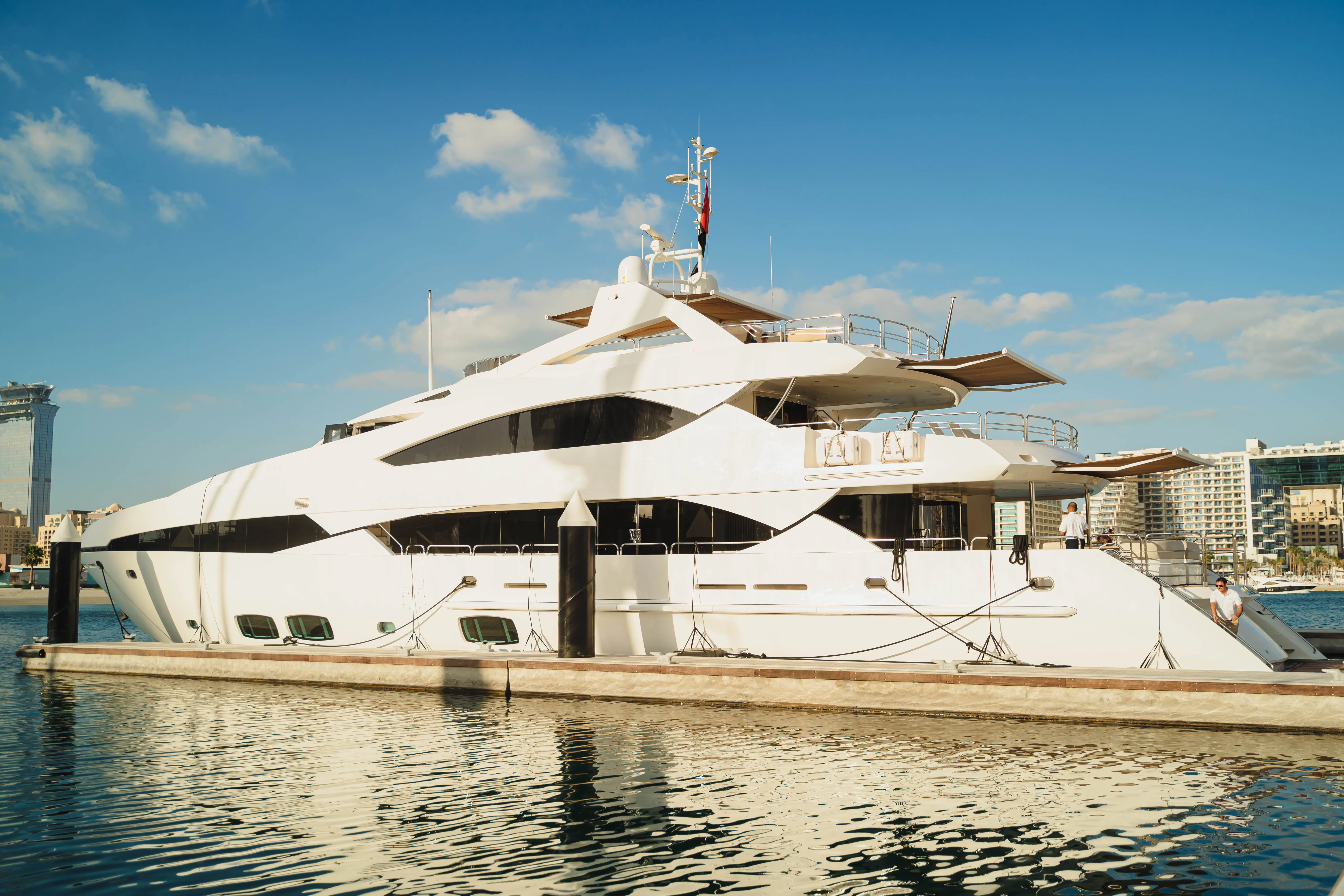 Charter the Sunseeker 131 and experience superyacht luxury at its finest. With sleek British design, expansive indoor and outdoor spaces, and premium amenities, Lucien offers the ultimate in comfort and sophistication. Perfect for stylish cruising across the tranquil waters of the Gulf, this yacht sets the scene for unforgettable moments—whether you’re entertaining guests or enjoying a peaceful escape at sea.